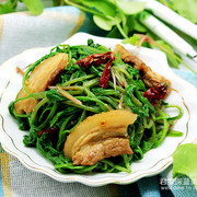 水萝卜叶、五花肉、葱、蒜、姜、红辣椒、盐、生抽、料酒。