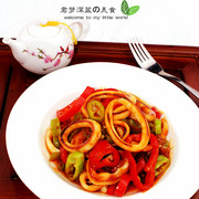 鱿鱼、青椒、红椒、小洋葱头、番茄酱、盐。