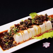内脂豆腐、皮蛋、红油、香菜、蒜。