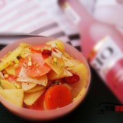 土豆、胡萝卜、香菜、葱、红青椒、蒜。