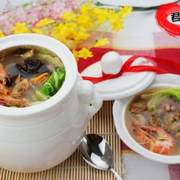 虾、海鲜、鱿鱼、白菜叶、油、葱。