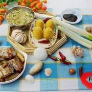 鱿鱼籽、葱花、鸡蛋、辣椒面、豆面、玉米面、萝卜、咸带鱼。
