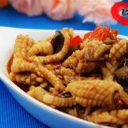 鱿鱼、青红椒、豆瓣酱、陈醋、酱油、糖、味精、盐。