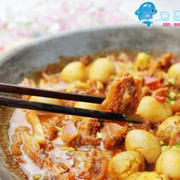 海葵、鹌鹑蛋、洋葱、豆瓣酱、盐、醋、生抽、味精、料酒。