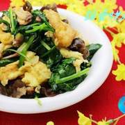 菠菜、鸡蛋、木耳、干沙蛤肉。