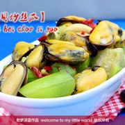 贻贝、丝瓜、葱、姜、蒜、红椒、生抽、盐、料酒。