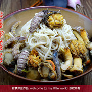 面条、小鲍鱼、呲蛤肉、天鹅蛋肉、虾爬肉、扇贝肉、葱、蒜、盐、生抽、料酒、白胡椒粉。