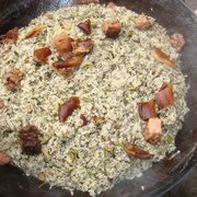 粘米、糯米、腊肉、社菜、胡葱、油、盐。