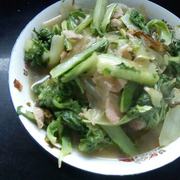 小白菜、粉条、猪肉、油、葱、盐、味精。