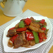 五花肉、洋葱、青椒、红椒、蒜瓣、糖、盐、生抽、老抽、蚝油、豆瓣酱、料酒。
