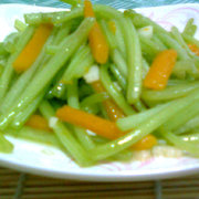 西瓜皮、胡罗卜、蒜、盐、味极鲜、芝麻酱、糖、白醋。