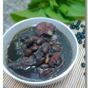 黑豆、排骨、生姜、大蒜、料酒、生抽、糖、盐。