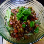 荞麦面、鸡蛋、毛豆、玉米、泡好的黑木耳、胡萝卜、瘦肉、黄瓜。