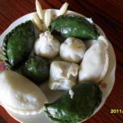 糯米粉、粳米粉、红豆馅、四季豆、茭白、五花肉、火腿肠。