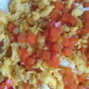 鸡蛋、玉米、萝卜、盐、鸡精、调和油。