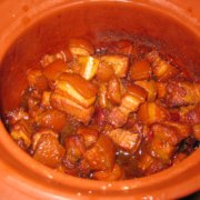 五花肉、料酒、干辣椒、八角、干姜、蒜、洋葱。