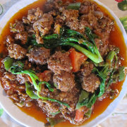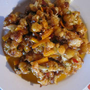 菜花、胡萝卜、葱、姜、蒜、盐、香油、豆瓣酱、淀粉、蚝油、白糖、绍酒、食用油。