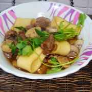 牛腩、口蘑、土豆粉、食用油、干辣椒、花椒、生姜、盐、胡椒粉、鸡精、生抽、陈醋、料酒。