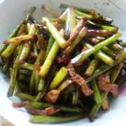 蒜薹、猪肉、食用油、生抽、胡椒粉、鸡精。