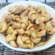 千张结、五花肉、食用油、老抽、盐、胡椒粉、鸡精。