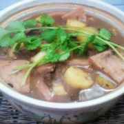 牛肉、骨汤火腿、山药、土豆、食用油、老抽、盐、鸡精、胡椒粉。