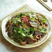 鸭肾、香菜、蒜瓣、生姜、生抽、陈醋、芝麻油。