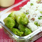 米饭、豌豆、猪肉馅、姜末、胡椒粉、椒粉、盐、猪油、鸡精。