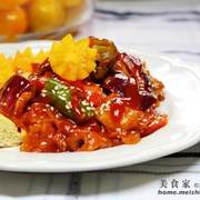 馕、五花肉、洋葱、青椒、胡萝卜、辣鸡调味料、辣椒酱、番茄酱、梨、大蒜、盐、白糖。
