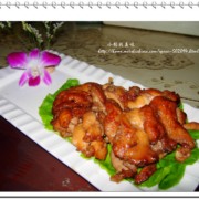 鸡腿、五香粉、盐、料酒、生抽、蜂蜜。