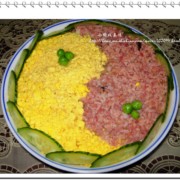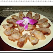 鸡脯肉、冬笋、香菇、培根、鸡蛋、豌豆、盐、糖、蒸鱼豉油、料酒、鸡精、水淀粉。