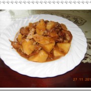 猪五花肉、八角、小茴香、生姜、葱、盐、糖、味精、料酒、老抽、生抽、醋、油。