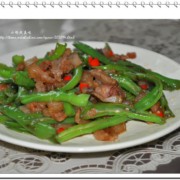 肥猪肉、绿尖椒、红色小米辣、油、盐、味精、生抽。