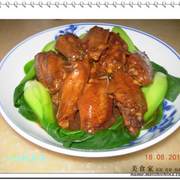 鸡中翅、青菜心、葱段、姜片、蚝油、鸡精、盐、糖、酱油、水、油。