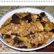 茄子、口菇、猪绞肉、大豆油、味精、大蒜、酱油、大葱、盐、姜。
