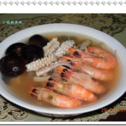 干贝、鱿鱼、河虾、冬瓜、香菇、口菇、海鲜菇、姜、大葱、盐、料酒。