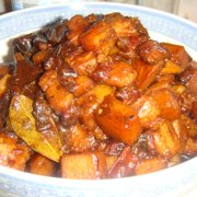 土豆、五花肉、八角、香叶、桂皮、辣椒、蒜、豆豉、糖、豆瓣酱。
