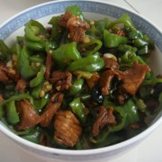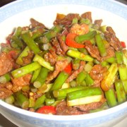 长豆角、猪肉、生姜、蒜、酱油、生粉、料酒、生抽、干辣椒粉。