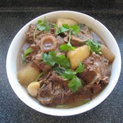 羊蝎子、大白萝卜、葱姜蒜、花椒大料桂皮香叶小茴香、盐老抽料酒。
