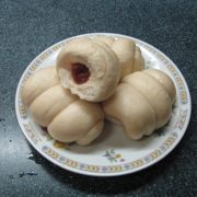 低粉、鸡蛋、橄榄油、牛奶、白糖、红豆沙、泡打粉。