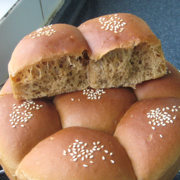 全麦粉、咖啡粉、白糖、鸡蛋、黄油、酵母、盐、白芝麻、水。