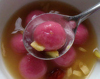 糯米粉、红苋菜、红豆沙、白糖、红片糖、姜。