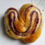 高筋面粉、水、干酵母、奶粉、全蛋、黄油、紫薯馅、全蛋液、细砂糖、盐。