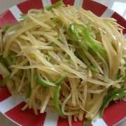 土豆、青椒、蒜、盐、鸡精、陈醋、生抽。