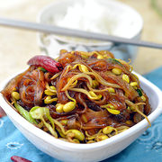 豆芽、粉条、蒜苗、生抽、老抽、五香粉、盐。