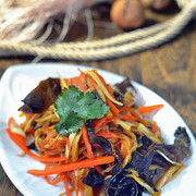 茭白、木耳、胡萝卜、盐、蚝油、鸡精。