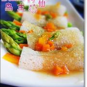干竹笙、芦笋、红萝卜、生粉、酱油、糖。