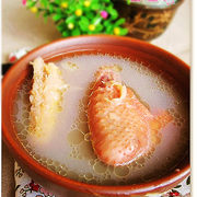 鸡骨架、猪瘦肉、鳘鱼肚、海底椰、淮山、蜜枣。