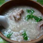 大米、猪脊椎骨、白萝卜、香菜、盐、酱油。