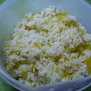 剩饭、菜花、青瓜、瘦肉、火腿肠、猪油、盐、酱油。