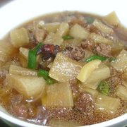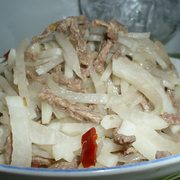 白萝卜、牛肉、辣椒、蒜头、蒜头、盐、味精。